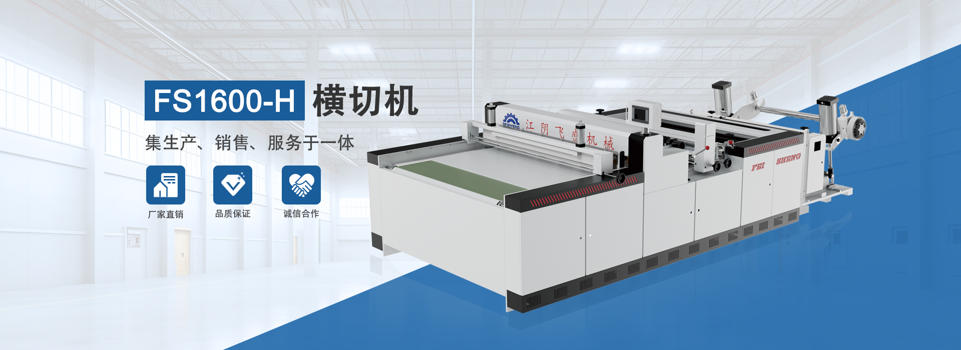 江陰市飛盛機(jī)械有限公司位于顧山鎮(zhèn),是一家集生產(chǎn)、銷(xiāo)售、服務(wù)于一體的機(jī)械公司,公司主營(yíng)分切機(jī)系列,橫切機(jī)系列,復(fù)卷機(jī)系列,主要生產(chǎn)銷(xiāo)售:FS微機(jī)控制高精度橫切機(jī)(帶縱向分切)、FS全自動(dòng)整理高精度橫切機(jī)、無(wú)紡布橫切機(jī)、切片機(jī)、卷筒分切機(jī)、紙吸管分切機(jī)、龍門(mén)分切機(jī)、無(wú)紡布分切機(jī)、全自動(dòng)高精度橫縱切機(jī)(A3/A4)雙卷放料、FS A4全自動(dòng)A4切紙包裝一體機(jī)等。